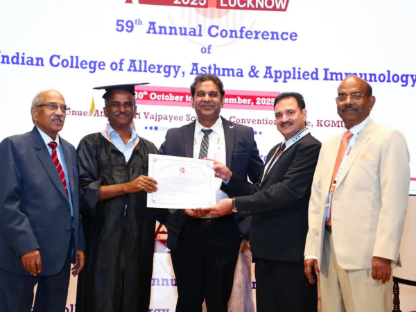 In recognition of his outstanding contributions in the field of Immunology, Prof. Jagadeesh Bayry, Professor and Head,  Department of Biological Sciences and Engineering, has been elected as a Fellow of the Indian College of Allergy, Asthma and Applied Immunology (ICAAI) for the year 2025. ICAAI was established in 1967 with its headquarters at the Vallabhbhai Patel Chest Institute, University of Delhi. It has about 950 life members from both India and abroad. The honour was conferred during the 59th Annual Conference of ICAAI organised by the King George Medical University, Lucknow from October 31-November 02, 2025.